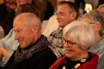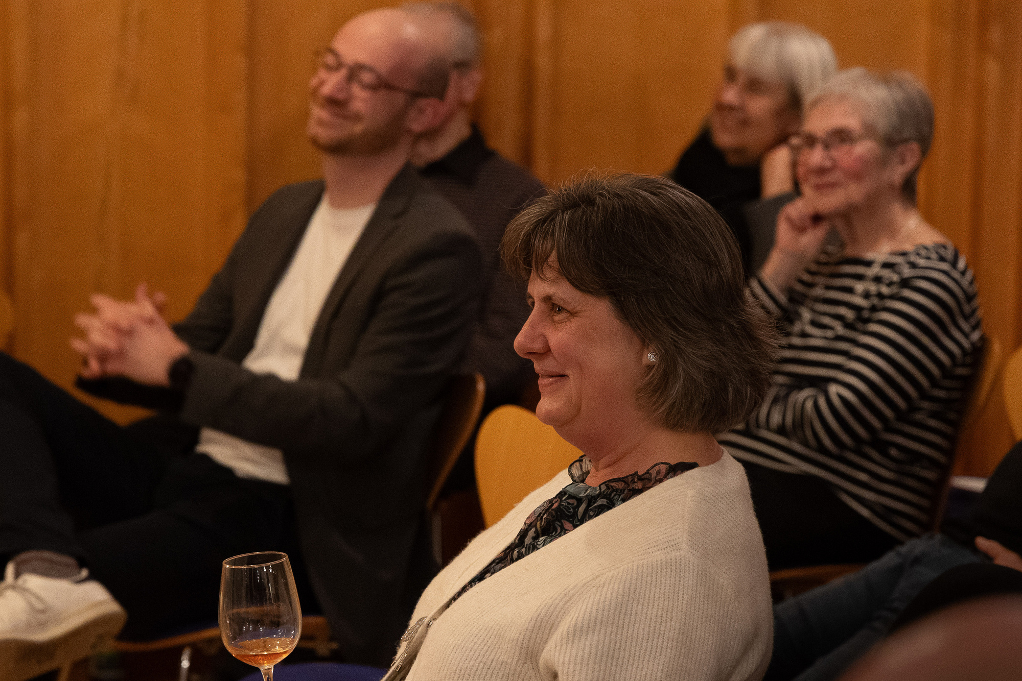 Nach den Reden und einer kleinen Stärkung an dem gut bestückten Buffet mit selbst gemachten Leckereien, und dem Getränkestand unter der Leitung des jungen Küchenteams, begann die Lesung, die die zahlreichen Gäste gut amüsierte.