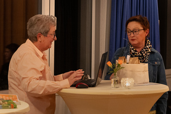 Pfarrer Reuter als Träger der Bücherei sprach Segensworte und erinnerte an das geschriebene Wort als Wissensträger für viele Generationen. Weitere Glückwünsche kamen von der Fachstelle des Medienhauses des Bistums Würzburg von Elias Huisl, und der Vertreterin der Arbeitsgemeinschaft der ehrenamtlich geführten Büchereien im Kreis Aschaffenburg, Nadine Schrott.