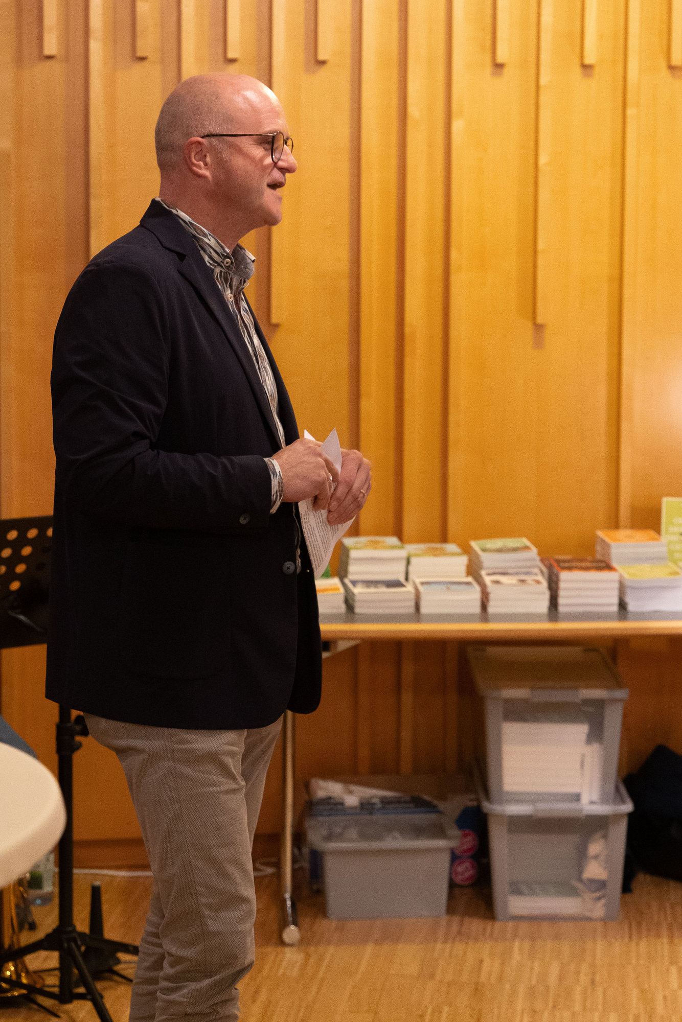 Die Bücherei feierte am 10.11.2024 ihr 25 jähriges Jubiläum mit einer Lesung von Tim Frühling. Dieser las aus seinem Krimi "Der Kommissar in Wanderschuhen". Die Feier wurde musikalisch untermalt von der örtlichen Band "Imagine Brass", die ihren ersten öffentlichen Auftritt hatte.